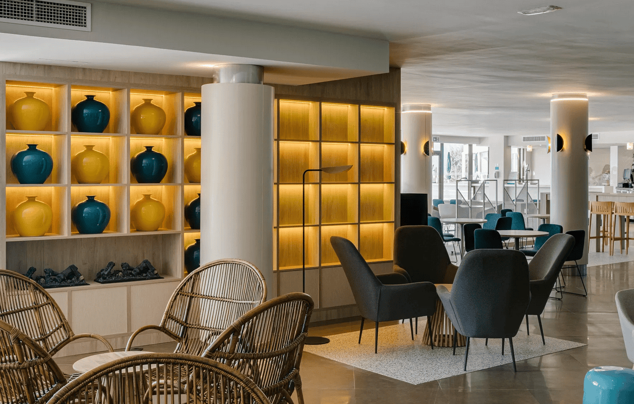 Das Hotel (4,3/5 bei Google) liegt an der Westküste Mallorcas südlich von Palma. Nur die Uferpromenade trennt die Unterkunft vom Strand der Cala Estancia. In direkter Umgebung befinden sich einige Restaurants und Lokale, falls ihr euch außerhalb des Hotels etwas gönnen wollt. Zudem sind einige Autoverleiher in der Nähe, sofern ihr Mallorca in dieser Form erkunden möchtet. Die Entfernung zum Flughafen ist gering (ca. 10 Minuten Transferzeit).