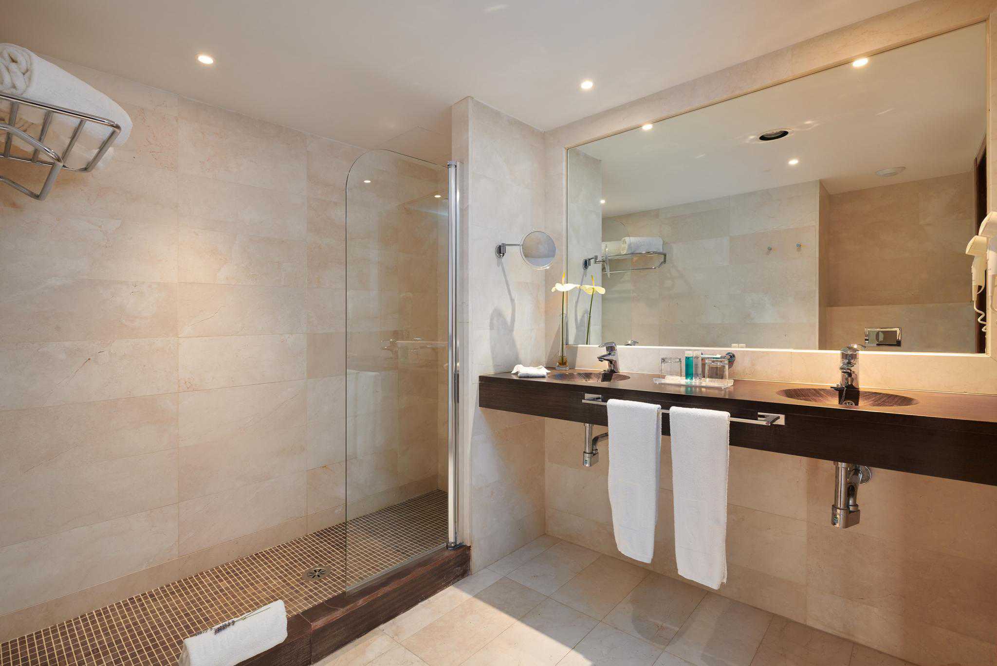 Die Zimmer sind 21 bis 39 Quadratmeter groß und besitzen einen Balkon. Außerdem sind die unter anderem mit einer Klimaanlage, Flat TV, Bad mit WC und Dusche, Minibar und Telefon ausgestattet. Kinderbetten werden bei Bedarf zur Verfügung gestellt.