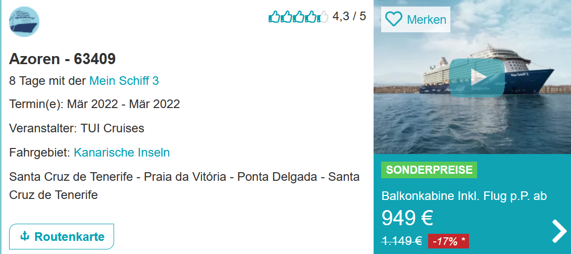 Es gibt derzeit noch einige andere Kreuzfahrtangebote, die euch vielleicht interessieren könnten: