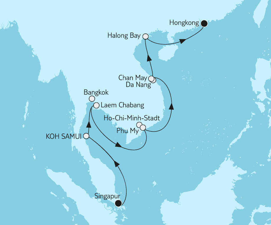 - Tag 5 – 6 Laem Chabang (Ankunft 8 Uhr/Abfahrt 2 Uhr)