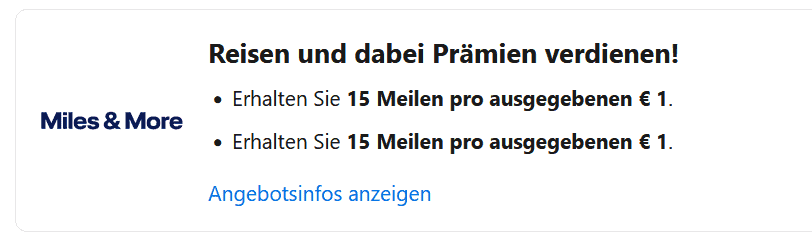 “Für jeden a u s g e g e b e n e n Euro für Buchungen im Aktionszeitraum vom 01. bis zum 31.07.2025 erhalten Sie 15 Meilen.”