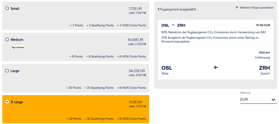 • Entgegen der Anzeige gibt es Qualifying Points für die CO₂-Kompensation nur, wenn der Flug selbst auch QP-berechtigt ist. Also nur für Flüge mit der Lufthansa Group sowie Croatia, ITA, Luxair & LOT, aber nicht für alle anderen Star-Alliance-Mitglieder.