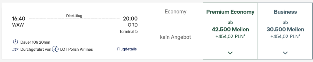 Wirklich günstig ist aus meiner Sicht nur die LOT Premium Economy nach Chicago, wenn man nichts gegen die Anreise nach Polen hat.