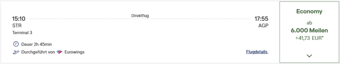 - Stuttgart – Malaga für 12.000 Meilen + 62€