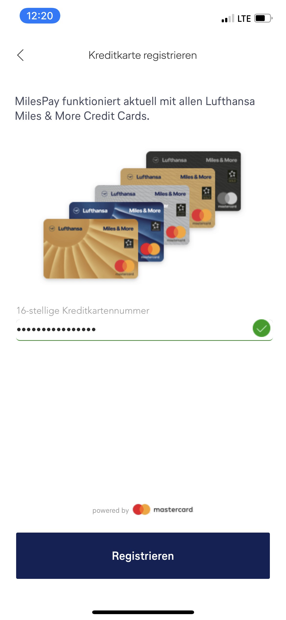 Lachnummer: Bei der Registrierung wird angezeigt: Miles&Pay funktioniert zur Zeit mit allen Miles&More Kreditkarten. Wenn ich meine Austrian M&M Karte registrieren will, erscheint: Kreditkarte für Miles&Pay nicht zulässig !
