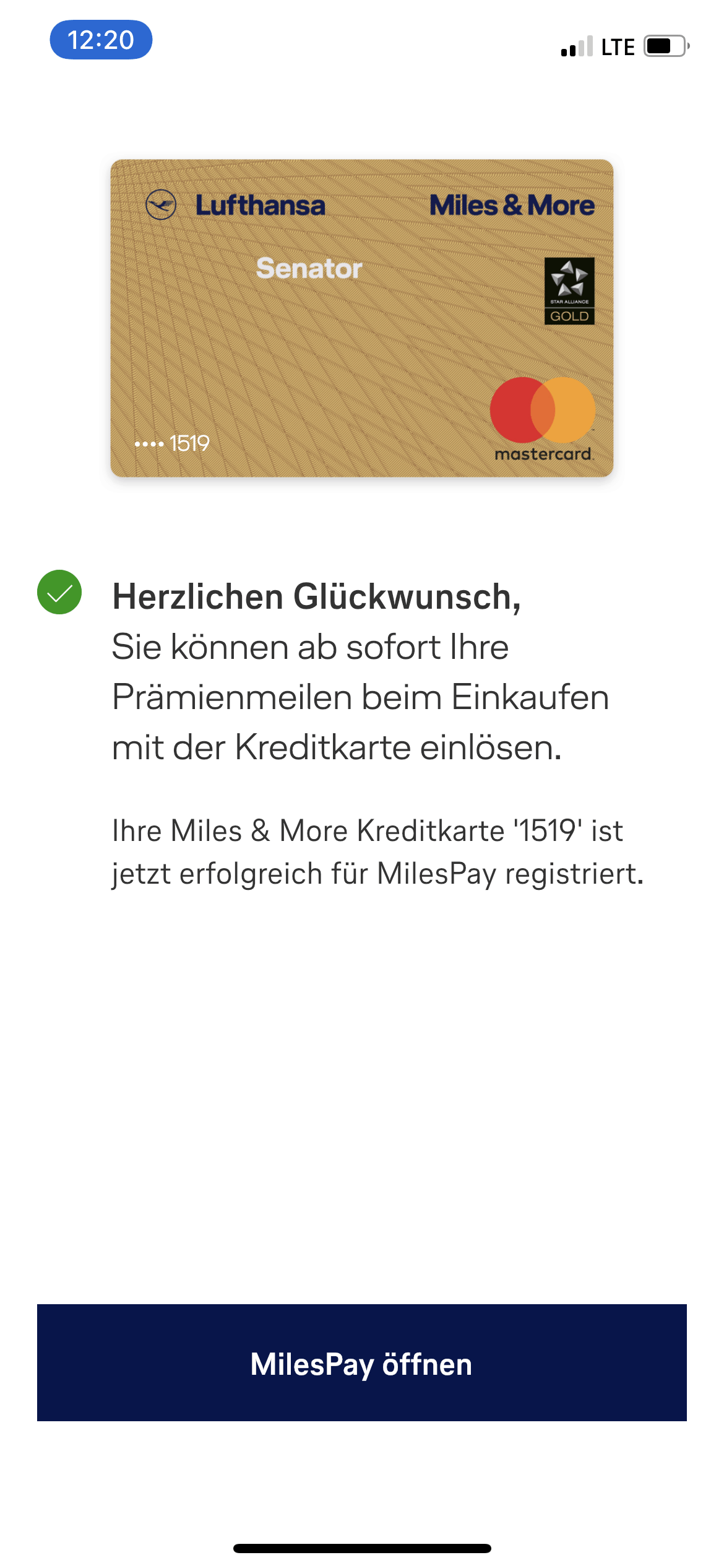MilesPay ist ein neues Feature der Miles&More-Kreditkarten, mit welchem ihr Meilen für zukünftige Einkäufe einsetzen könnt. Man muss die Kreditkarte vorher registrieren. Momentan gibt es 500 Gratismeilen, wenn ihr euch bis zum 30. September 2021 mit eurer Miles&More-Kreditkarte registriert. Außerdem gibt es 500 weitere Gratismeilen, wenn ihr MilesPay einmal einsetzt.