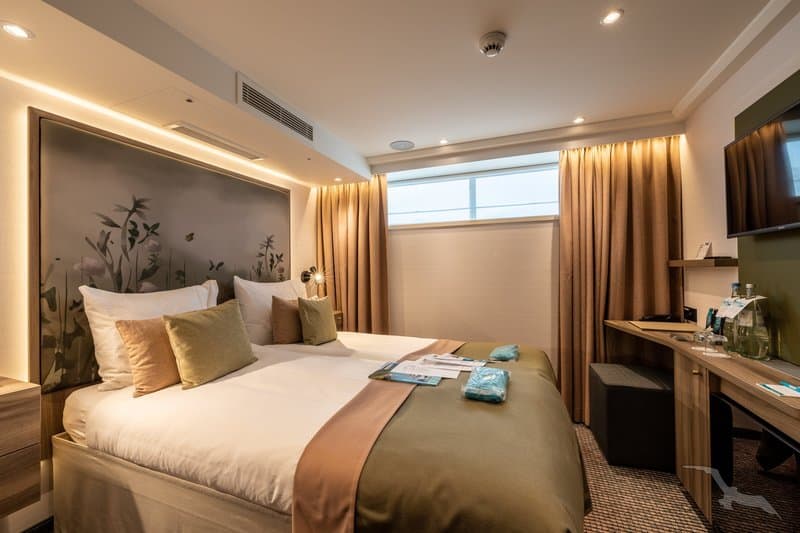 Das Schiff verfügt über 74 Außenkabinen. Alle Kabinen sind elegant eingerichtet und bieten bequeme Betten, ein Badezimmer mit Dusche und WC, einen Föhn, eine Klimaanlage, einen Fernseher, ein Radio, eine Kaffeemaschine, eine Minibar, einen Safe und ein Telefon. Die Kabinen auf dem Orion- und Saturndeck sind mit einem französischen Balkon ausgestattet. Die Kabinen auf dem Neptundeck haben schmale Oberfenster, die sich nicht öffnen lassen.