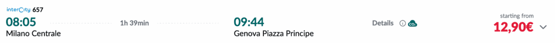 Für die Weiterfahrt von Mailand nach Genua könnt ihr anschließend die Züge der italienischen Bahngesellschaft Trenitalia nutzen. Tickets im Fernverkehr gibt es bereits ab 13€ pro Person und Strecke: