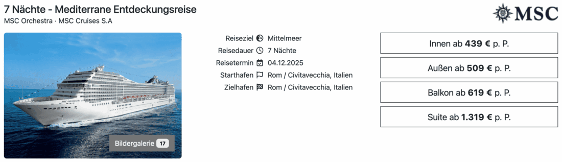 → Alle Deals für MSC Orchestra
