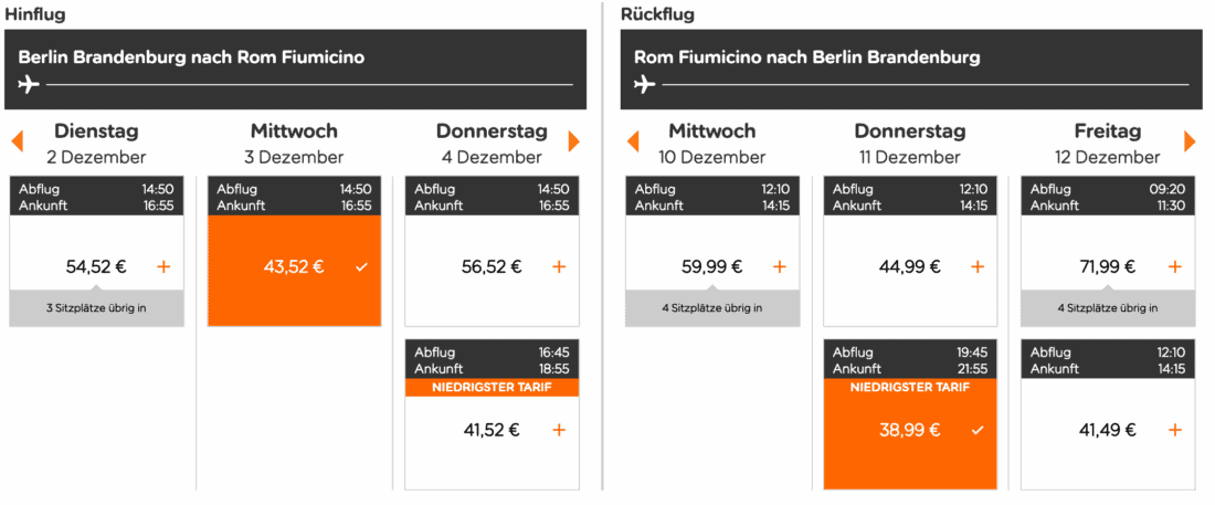 Die Kreuzfahrt startet und endet in Civitavecchia. Für die An- und Abreise könnt ihr euch beispielsweise für Direktflüge mit Easyjet entscheiden. Bei Hinflug am 3. Dezember und Rückflug am 11. Dezember 2025 zahlt ihr momentan 83€ (zzgl. 71€ für 23 kg Aufgabegepäck):