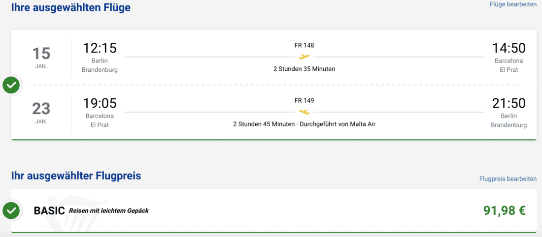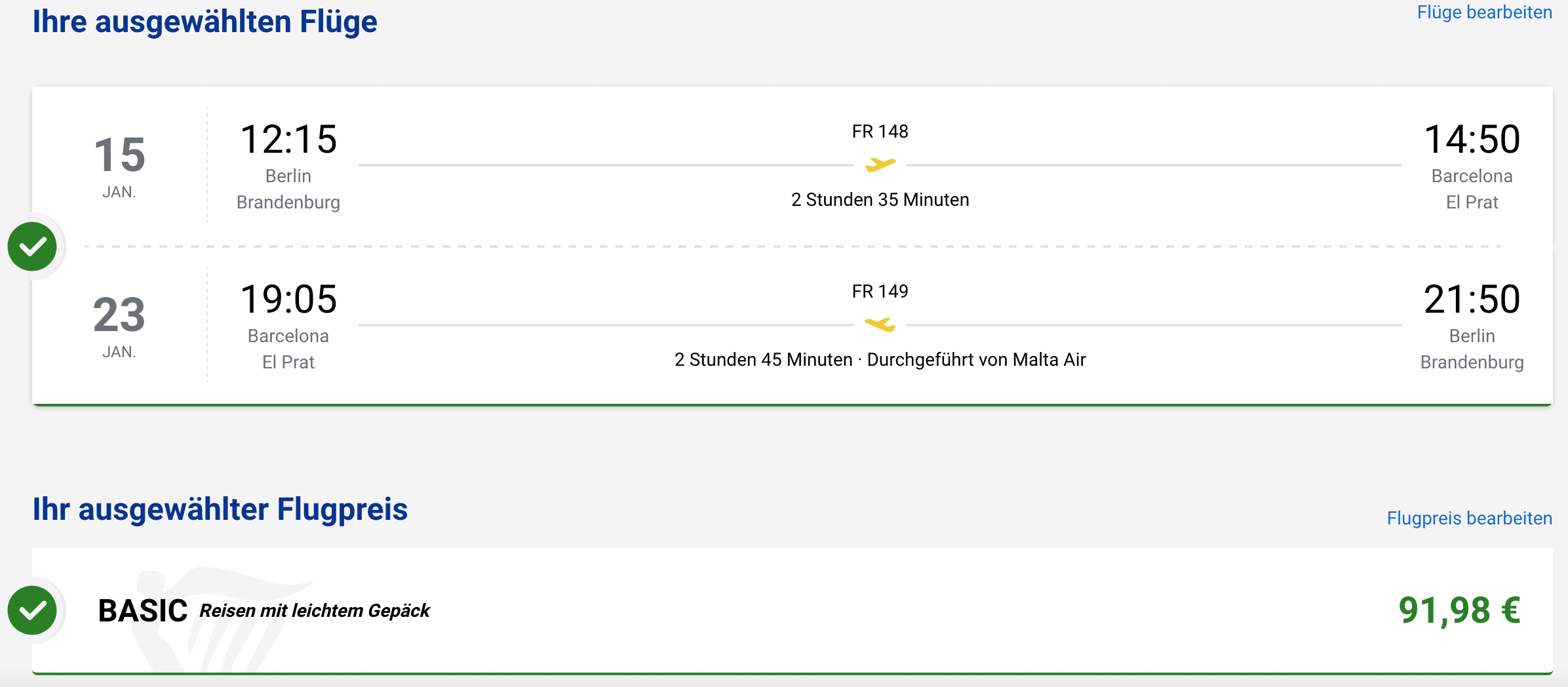 Die Kreuzfahrt startet und endet in Barcelona. Ein günstiges Beispiel für die An- und Abreise sind Direktflüge mit Ryanair ab Berlin, die ihr ab 92€ (zzgl. 55€ für 20 kg Aufgabegepäck) buchen könnt:
