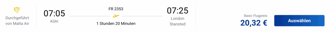 Die Kreuzfahrt startet in Southampton. Für die Anreise nach London gibt es vielfältige Möglichkeiten. Eine günstige Option ist die Verbindung mit Ryanair von Köln zum Flughafen Stansted am 6. November 2024. Dieser Flug ist aktuell ab 21€ (zzgl. 30€ für 20 kg Aufgabegepäck buchbar):