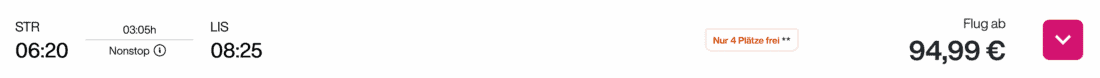 Die Kreuzfahrt startet in Lissabon und endet in Civitavecchia (ca. eine Stunde von Rom entfernt). Deshalb sind hier zwei Oneway-Flüge erforderlich. Eine günstige Verbindung nach Lissabon gibt es etwa mit Eurowings am 30. März 2025 von Stuttgart. Dieser Flug ist ab 95€ (zzgl. 28€ für 23 kg Aufgabegepäck) buchbar.