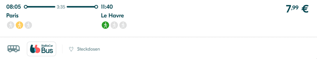 Für die Fahrt von Paris nach Le Havre könnt ihr am Tag darauf eine Verbindung mit BlaBlaBus nutzen, die bereits ab 7,99€ verfügbar ist. Beachtet dabei, dass die Abfahrt des Schiffes um 18 Uhr erfolgt und ihr spätestens 2 Stunden vorher an Bord sein solltet: