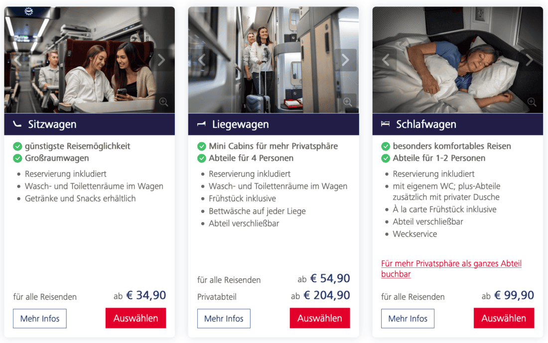 In den Nightjets der neuen Generation gibt es drei Reiseklassen: