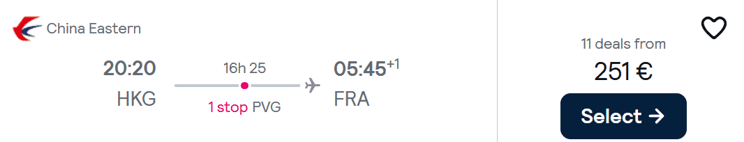 • Hongkong → Frankfurt ab 251€ (China Eastern)