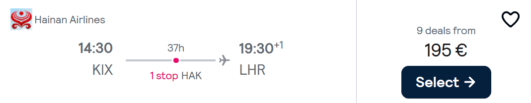 Osaka → London mit Hainan Airlines ab 195€ (Stopover möglich)