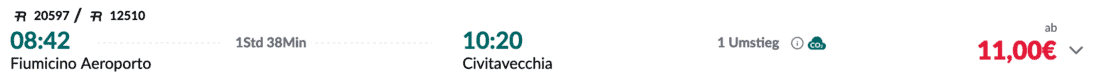 Für die Weiterreise vom Flughafen Fiumicino nach Civitavecchia könnt ihr die Züge der italienischen Bahngesellschaft Trenitalia nutzen. Tickets auf dieser Strecke gibt es bereits ab 11€ oneway. Die Fahrt in den Regionalzügen dauert ca. 90 Minuten: