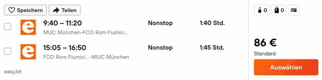 Die Kreuzfahrt startet und endet in Civitavecchia (ca. eine Stunde von Rom entfernt). Für die An- und Abreise könnt ihr etwa die Direktflüge mit Easyjet von München nutzen, wobei der Hinflug am 13. Juli und der Rückflug am 22. Juli 2025 erfolgt. Diese Kombination ist momentan ab 86€ (zzgl. ca. 100€ für das Aufgabegepäck) buchbar: