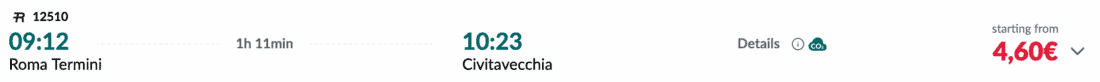 Für die Weiterreise nach Civitavecchia solltet ihr einen Blick auf die Webseite von Trenitalia werfen. Dort gibt es günstige Tickets für Direktverbindungen von Rom in die italienische Hafenstadt bereits ab rund 5€ pro Strecke: