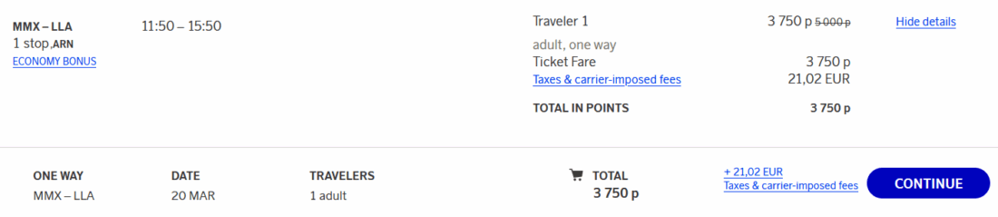 Einmal quer durch Schweden für 3.750 Punkte + 21,02€