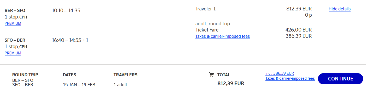 Wieso der Deal nicht auf der Seite war: Auf Strecken von und nach Skandinavien gibt es diesmal nur sehr wenig Rabatt, das war beim letzten Mal noch deutlich besser. Dazu ist es anscheinend nicht möglich, in beiden Richtungen Business Class zu fliegen.