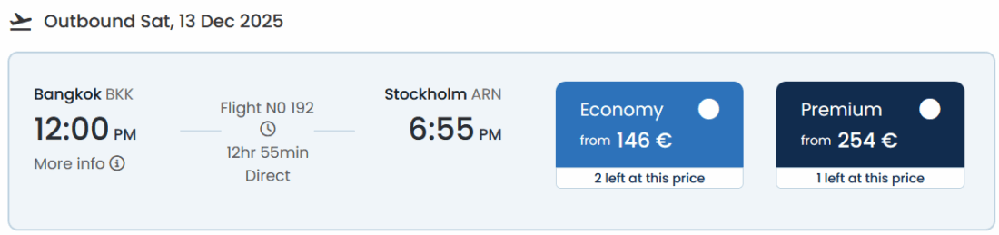 Norse Premium Economy von Thailand nach Stockholm ab 254€