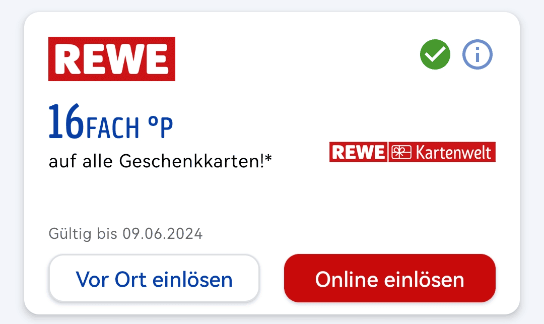 Bei Rewe bzw. Penny gibt es regelmäßig Angebote, die zusätzliche Punkte beim Kauf von Geschenkkarten versprechen. Normalerweise müsst ihr dafür zunächst Codes des Anbieters Wunschgutschein kaufen, und diese dann in Gutscheine für Amazon o.ä. umwandeln.