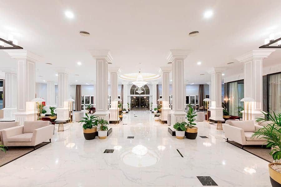 Das Hotel der Landeskategorie 4 (327 Zimmer) über 4 Pools mit 4 Bars, drei Restaurants, Wellness-Bereich, Fitnesscenter, Sauna, Whirlpool sowie Tennisplatz. Parkplätze stehen gegen Gebühr zur Verfügung. Animation wird täglich angeboten und für Kinder gibt es eigens einen Pool.
