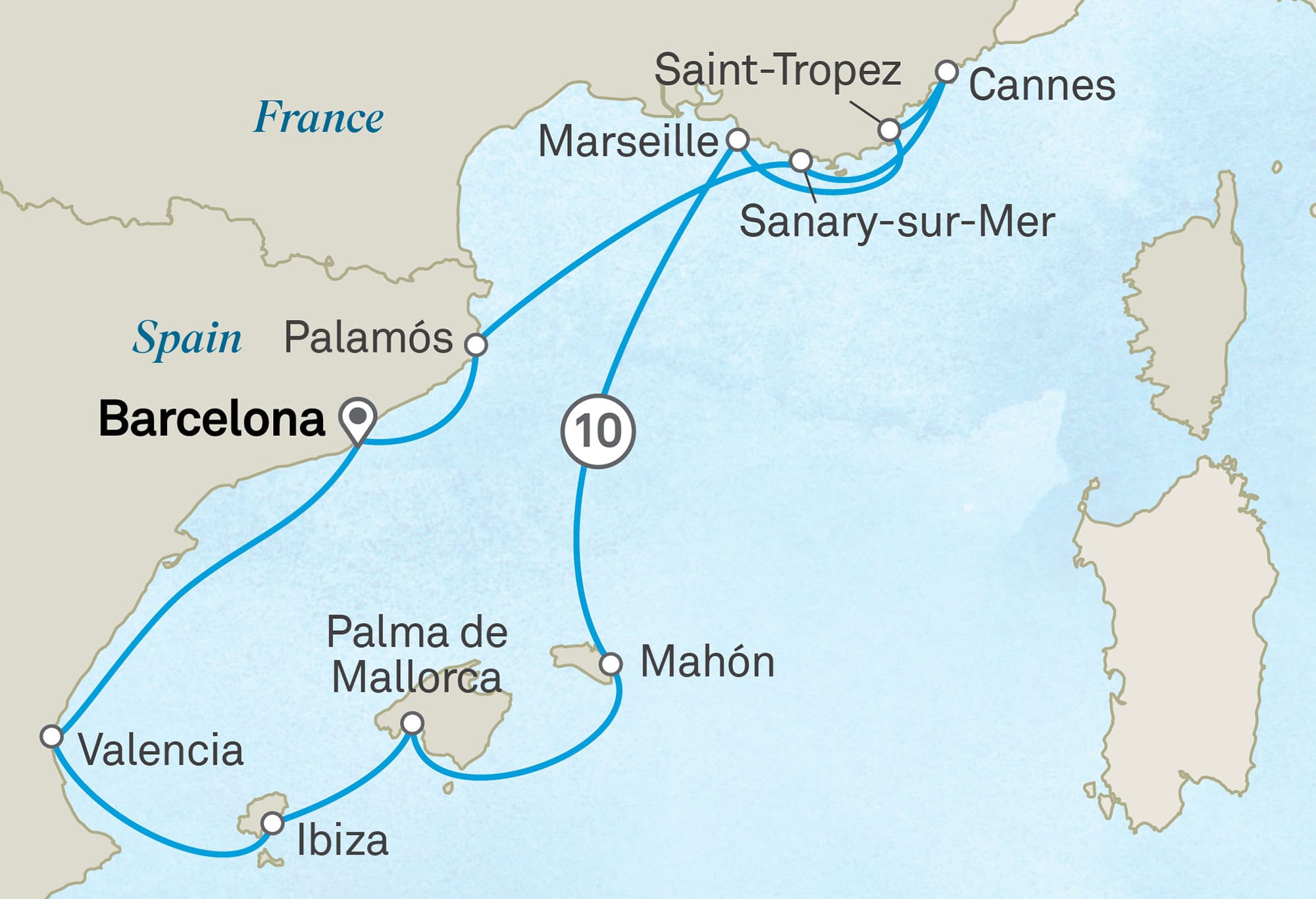 Eure Kreuzfahrt beginnt in der pulsierenden Stadt Barcelona, die für ihre Strände, eine innovative Küche sowie die lebendige Kunstszene bekannt ist. Diese beeindruckende Mischung zieht jedes Jahr Besucher aus aller Welt an. Der erste Zwischenstopp ist Palamós, ein Fischerdorf, welches mediterranen Charme versprüht. Im nahegelegenen Figueres erweckt das berühmte Dalí-Theater-Museum die surrealen Werke Salvador Dalís in einer faszinierenden Kunstausstellung zum Leben.