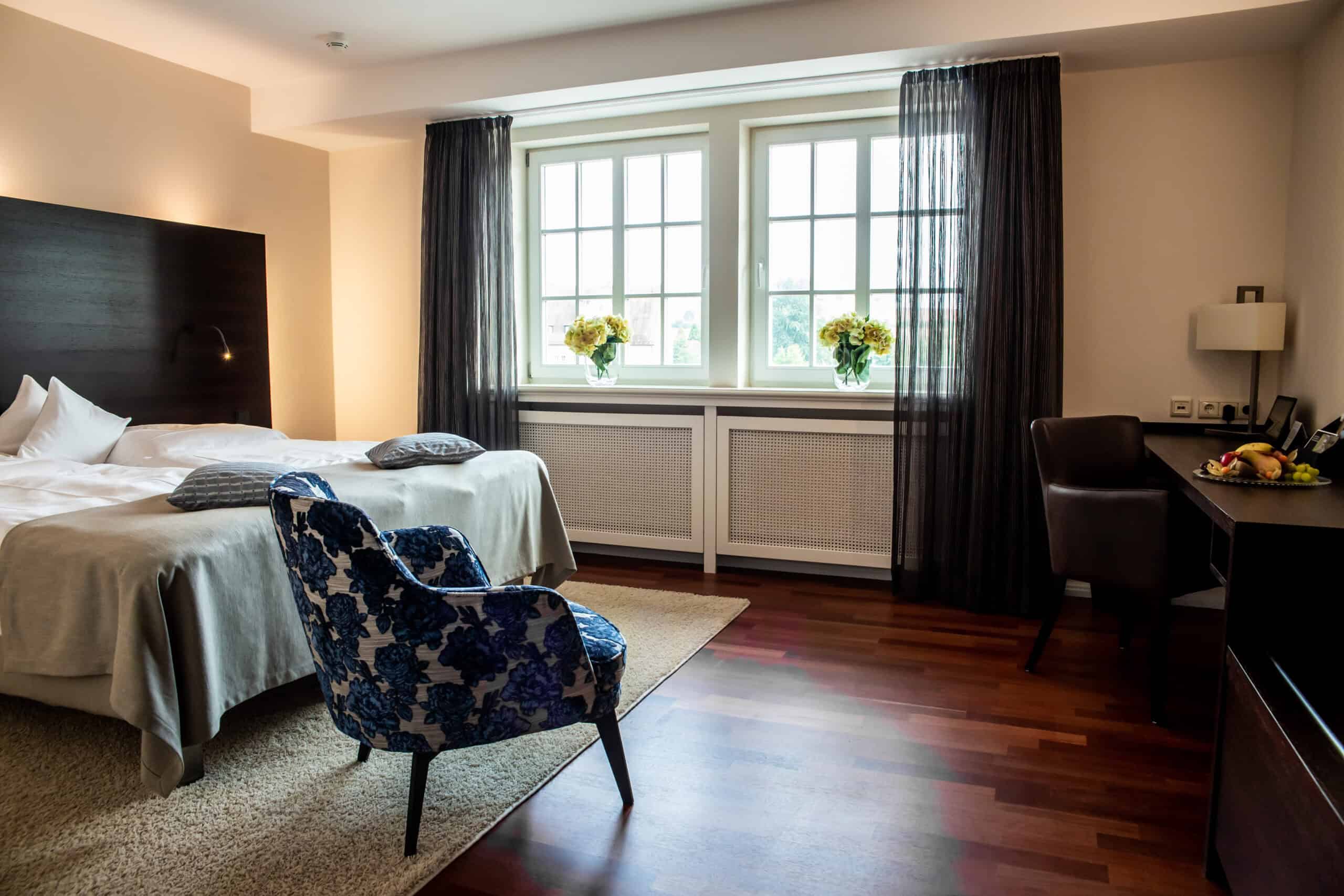 Je nach ausgewählter Kategorie übernachtet ihr entweder in einem Doppelzimmer in der Zehntscheune oder in einem Comfort-Doppelzimmer im Schloss.