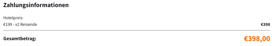 Im Vergleich dazu werden bei einer Buchung über die offizielle Webseite des Hotels an den identischen Beispieldaten 705€ fällig. Diese Rate wäre dann allerdings nicht stornierbar: