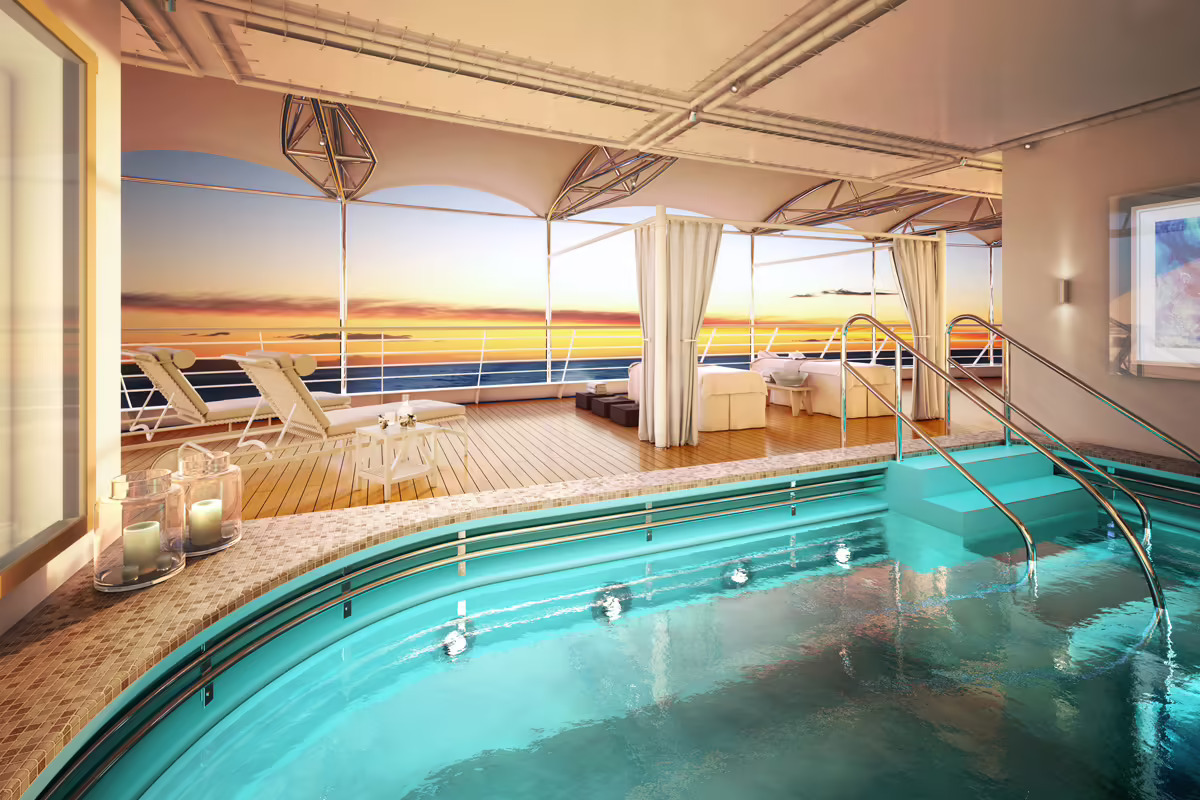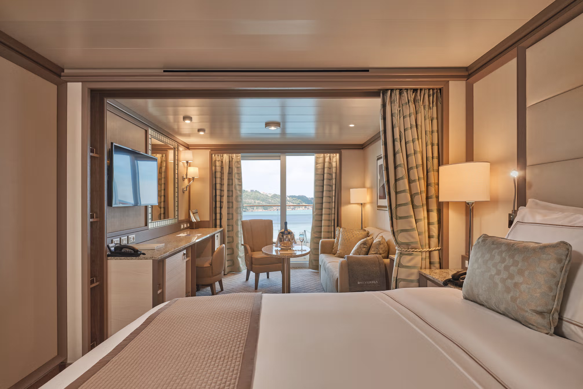 Alle Passagiere übernachten in geräumigen Suiten mit einer Mindestgröße von 31 m². Diese sind mit einem Marmorbad, Panoramafenstern oder Balkonen, einem begehbaren Kleiderschrank, einer Minibar mit kostenfreier Getränkeauswahl sowie vielen weiteren Leistungen ausgestattet. Manche der Suiten verfügen über Verbindungstüren, was insbesondere für Familien mit Kindern praktisch ist.