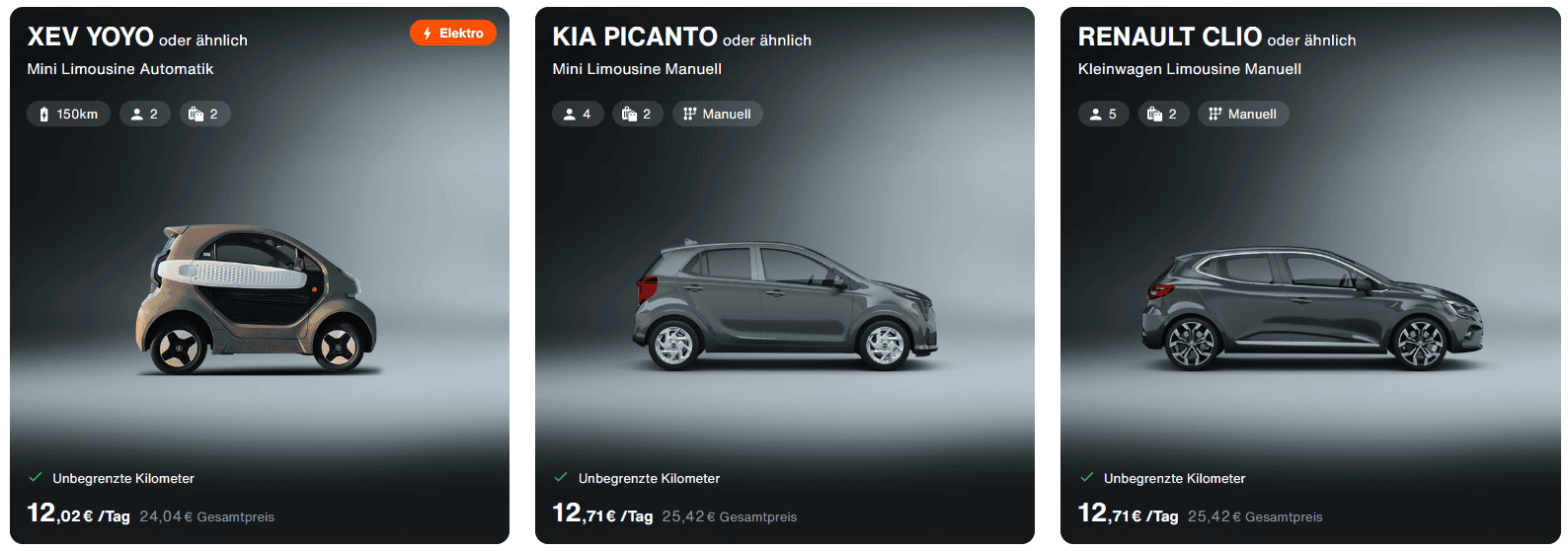 Ein derart günstiger Mietwagen ist natürlich eher der Ausnahmefall. In Deutschland müsst ihr mit rund 50€ pro Tag rechnen.