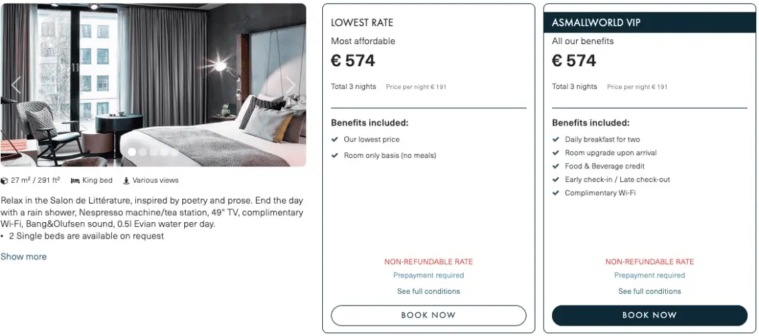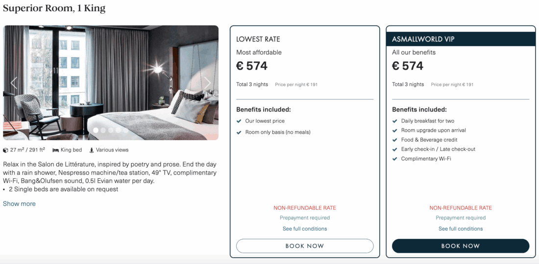 Übrigens würden selbst die 3 Übernachtungen ohne Frühstück bei Accor bereits 682,29€ kosten. Selbst dieser Tarif, der ebenfalls nicht erstattungsfähig ist, wäre somit teurer als das aktuelle Angebot bei ASMALLWORLD.