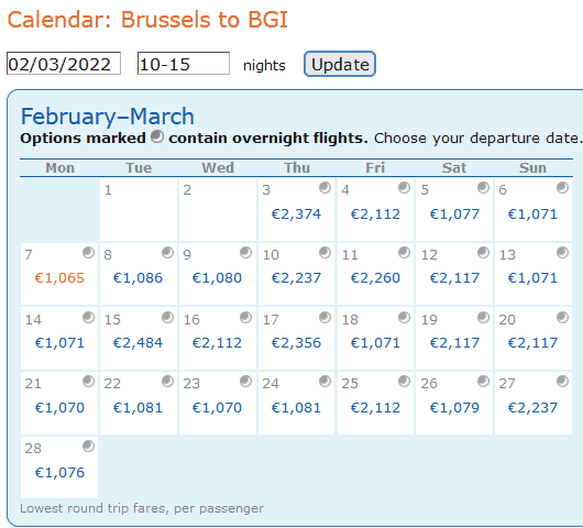 Sehr interessant ist das Angebot auch für Flüge nach Barbados in der Karibik. Einen Hin- und Rückflug mit u.a. Eurowings Discover, Air Canada und/oder Austrian könnt ihr bereits ab 1.055€ p.P. buchen. Die Buchung ist aber je nach Verbindung ziemlich kompliziert.