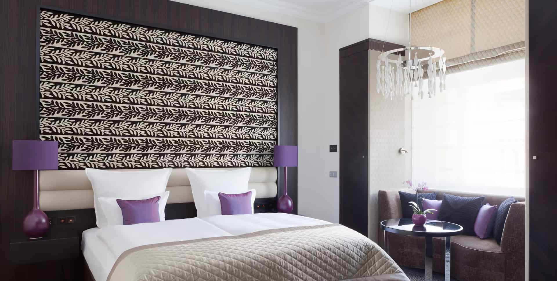 Die Deluxe-Doppelzimmer haben eine Größe zwischen 34 und 36 m2 und verfügen wahlweise über ein Doppelbett oder zwei separate Betten. Die Junior-Suiten sind mit 45 bis 46 m2 deutlich geräumiger und der Wohnbereich ist durch eine Mansarde oder einen historischen Erker mit dem Schlafbereich verbunden.