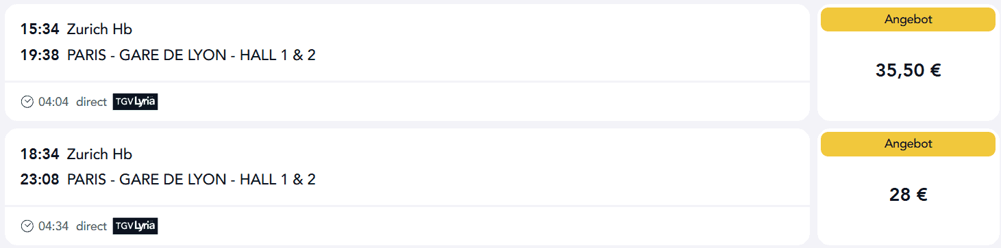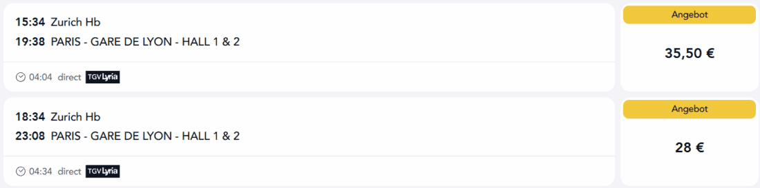 - Genf → Paris ab 24,50€ (30€ 1. Klasse)