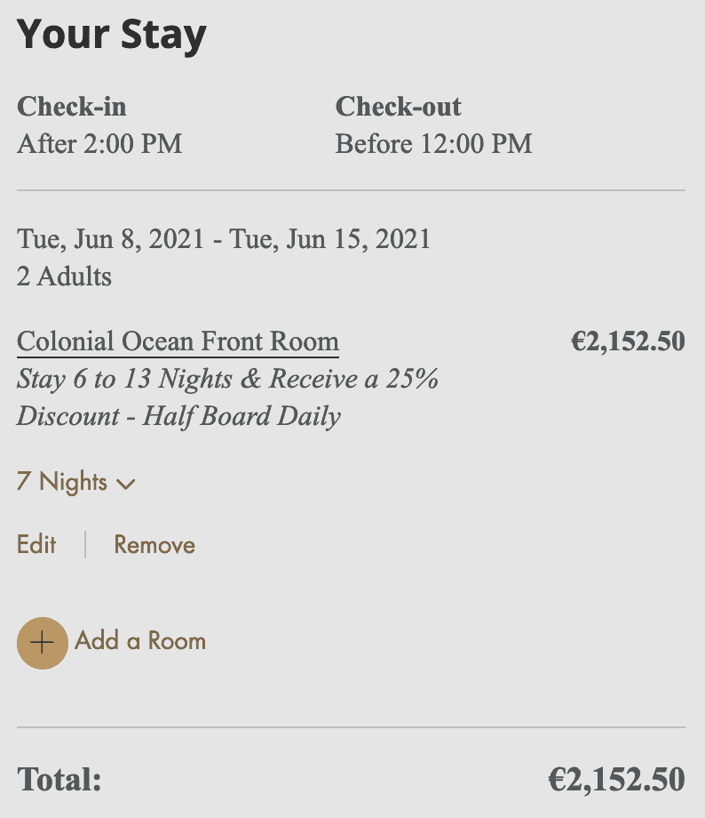 Ihr würdet 7 Nächte im Colonial Oceanfront Doppelzimmer verbringen. Außerdem gibt es 30% Rabatt auf den Flughafentransfer (59€ pro Person, insgesamt für hin und zurück) und auch 30% Rabatt auf Mauritius-Rundfahrten. Möchtet ihr länger bleiben, so kostet jede weitere Nacht 167€.