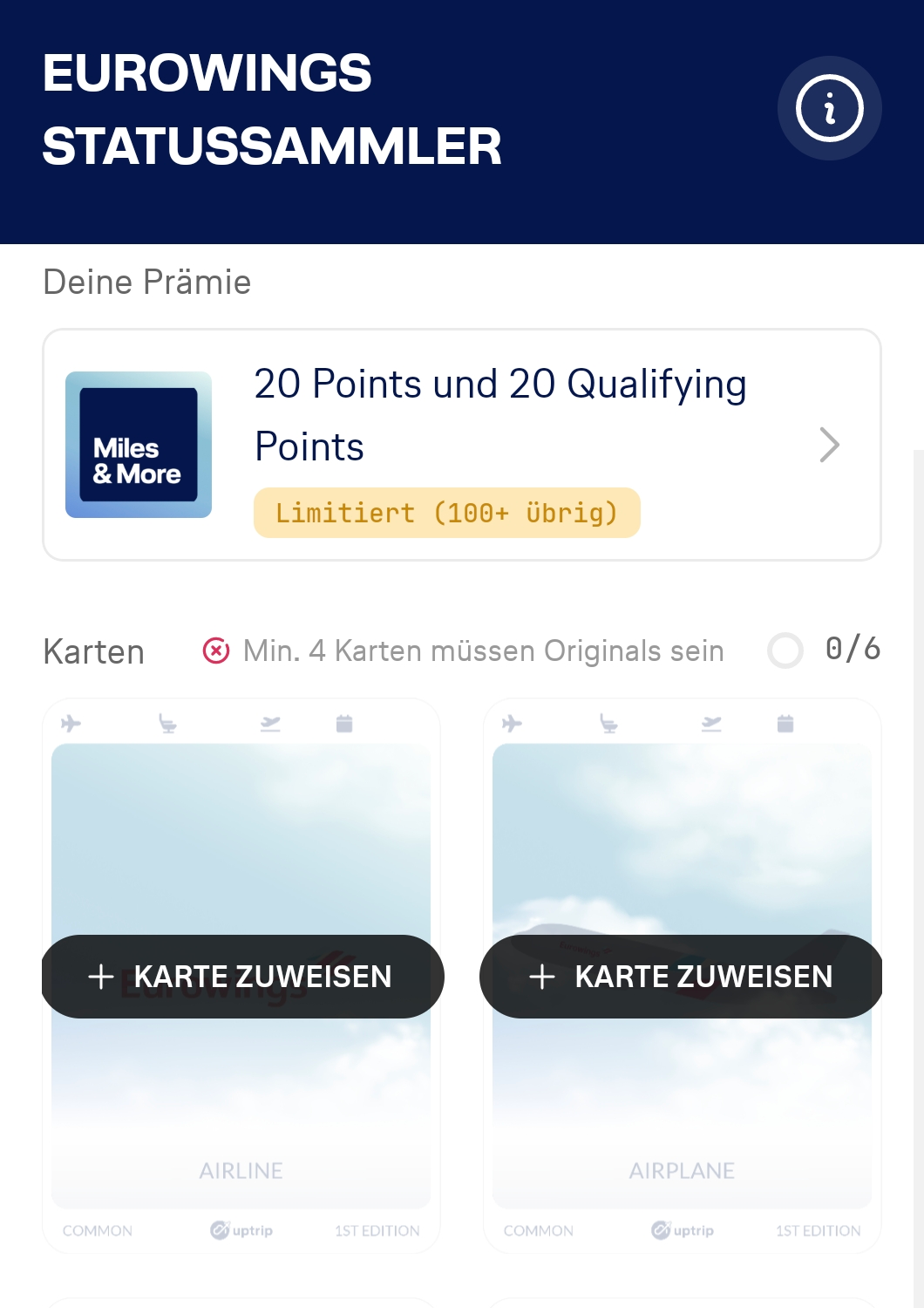 >> In the coming days, we will focus on redeeming all the cards and allow you to complete your collections. This includes the welcome cards, namely „Welcome to Uptrip“ and „Miles & More member“ cards. So don’t worry!
