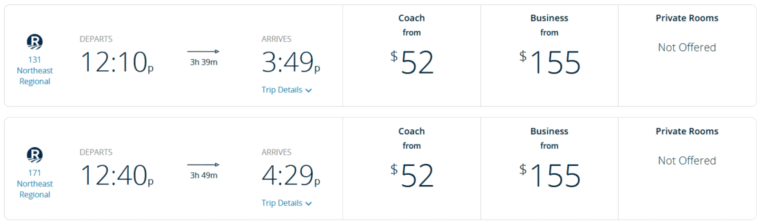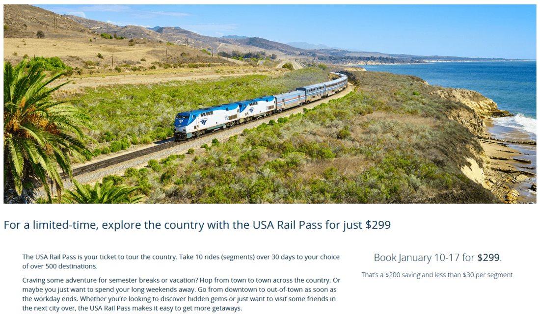 Jede der 10 Fahrten entspricht einem Segment ohne Umstieg. Es spielt keine Rolle, ob die Fahrt von New York nach Philadelphia führt (1h 20 min) oder von Seattle nach Chicago (45 Stunden). Vor allem längere Fahrten solltet ihr aber mindestens mehrere Tage im Voraus buchen, um sicher einen Platz zu bekommen. Mehr zu den Fallstricken im Abschnitt Konditionen.
