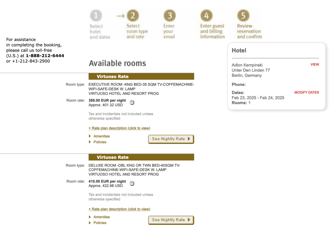 Die Preise für die Virtuoso-Rate starten, je nach Datum und Zimmerkategorie, bei knapp 400€ pro Nacht. Das ist natürlich immer noch viel Geld – aber wer sich mal etwas gönnen möchte, erhält zumindest all die oben genannten Vorteile.