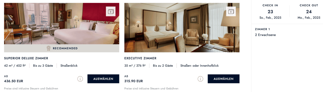 Der Virtuoso-Preis in Höhe von 389€ (siehe oben) entspricht der flexiblen Rate, die ihr auch direkt beim Hotel findet oder über andere Buchungswebsites – allerdings gibt’s nur bei Virtuoso die entsprechenden Vorteile. Hier ein Preisvergleich direkt beim Hotel. Mitglied bei KEMPINSKI DISCOVERY könnt ihr dort kostenlos werden.