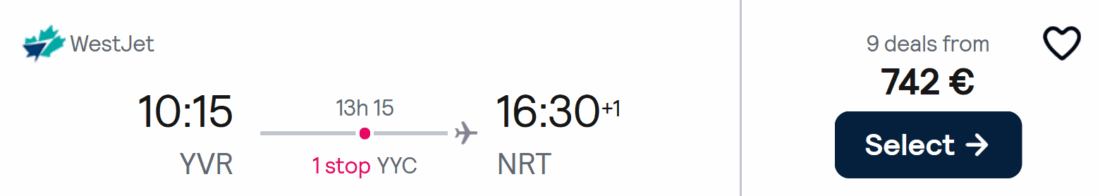 Buchen könnt ihr dann ab 742€ über Drittanbieter bei Skyscanner / Kayak oder für ca. 100€ mehr direkt bei Westjet.