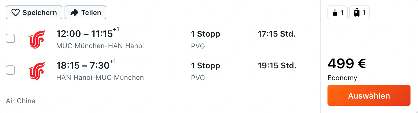 Alternativ könnt ihr für ca. 30€ mehr auch mit Air China (Star Alliance) oder China Eastern (SkyTeam) fliegen.