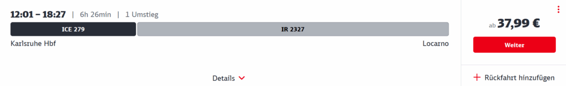 Buchen könnt ihr die Tickets direkt auf der Bahn-Webseite. Der Rabatt ist in den angezeigten Preisen bereits enthalten. Alternativ könnt ihr auch unser Formular für die Suche und Buchung verwenden: