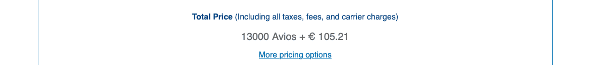 Das zweite Thema handelt von der Möglichkeit, Meilen bei Flying Blue zu „vervielfachen“. Das System kennen mittlerweile zahlreiche Vielfliegerprogramme. Denn fast alle setzen zur Abwicklung auf den Dienstleister Points.com, und der lässt sich neben Meilen-Abos immer neue Möglichkeiten einfallen. Leider scheint es die im Eingangspost erwähnen Preise von rund 1 Cent pro Meile aber höchstens für Neukunden zu geben. Alle anderen kommen auf rund 1,3 Eurocent – und somit einen nur mäßig attraktiven Preis.