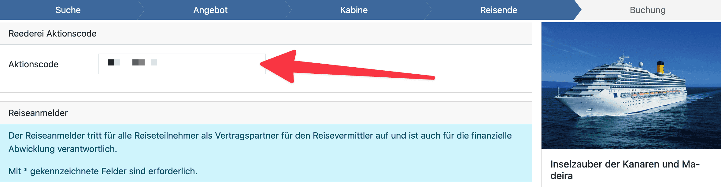 Zur Einlösung gebt ihr folgenden Gutscheincode im Schritt Reisende in das Feld Aktionscode ein: