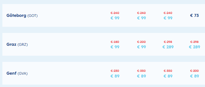 In folgendem Fall gibt es z.B. Tickets von Düsseldorf nach Göteborg für 89€ statt 350€ oneway. Allerdings dürften bei dem Normalpreis ohnehin nur noch Geschäftsreisende zugreifen. Meist liegt der Rabatt eher im Rahmen von 10% bis 30%: