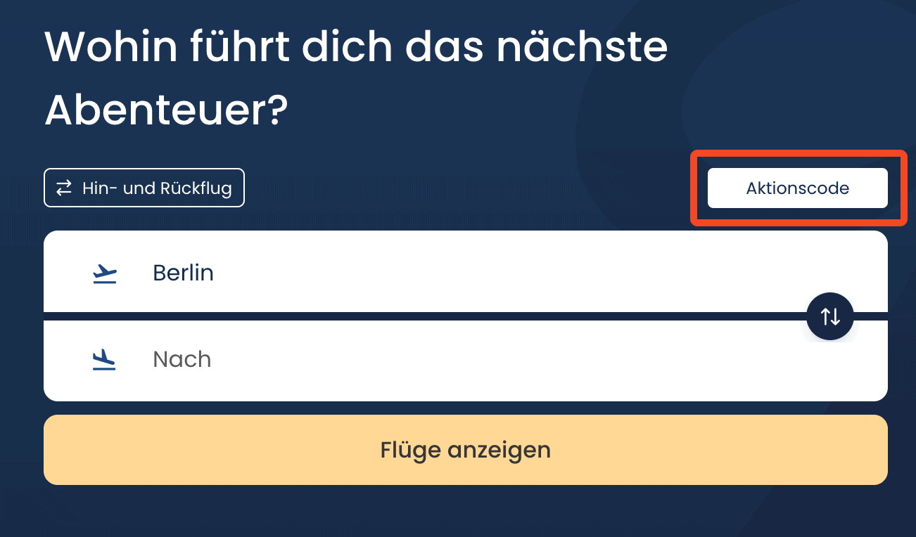 Einen Gutscheincode könnt ihr direkt auf der Startseite im Feld Aktionscode eingeben: